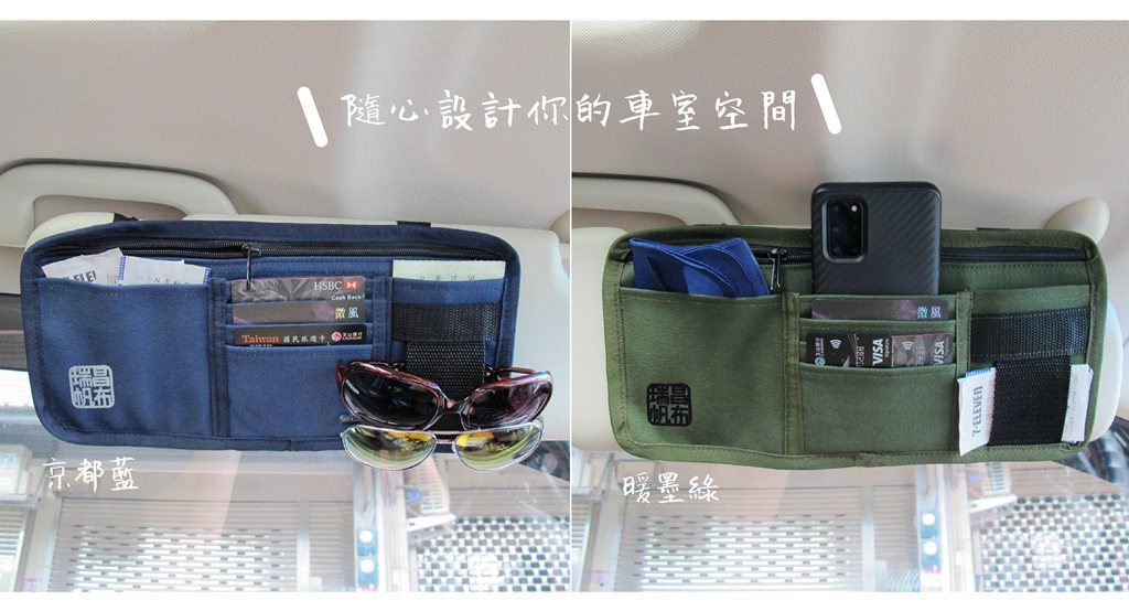 開車出遊旅行,總是有大大小小擾人的單據、發票、集點卡、停車單。出行必備的駕照、行照總是放到忘記在哪。利用車用遮陽板帆布收納袋,讓車上收納井然有序,隨行小物隨手可得。