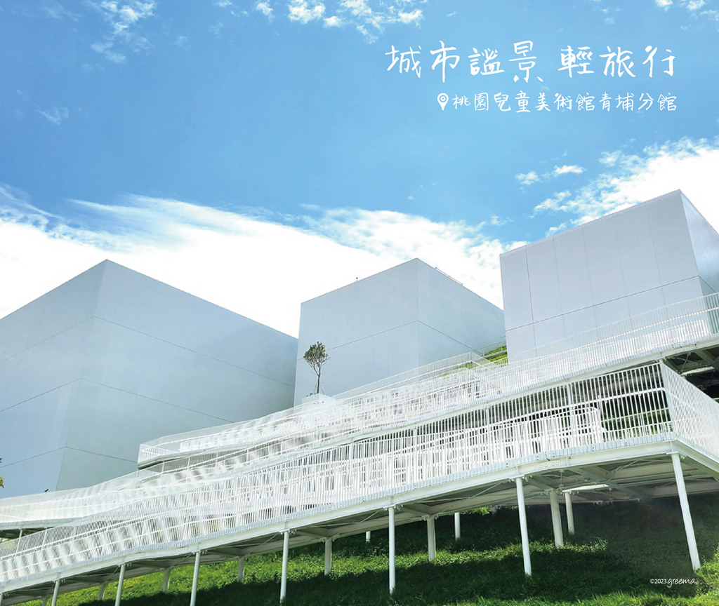 桃園兒童美術館青埔分館,以綠意廊道之姿繚繞的「藝術山丘」作為建築主體外觀,透過斜角天牆將建物外觀、空間設計與公園地景融合。山丘外坡錯落著大小不一藝術活動及展演的戶外平台、涼亭綠蔭及展望台等,可做為藝術饗宴活動的觀賞點,而山丘斜坡的設計形塑了自然清晰的視野,可俯視青塘園優美的水岸謐景,是享受片刻白日夢的最佳選擇,更是綠建築設計的經典。