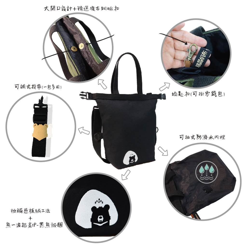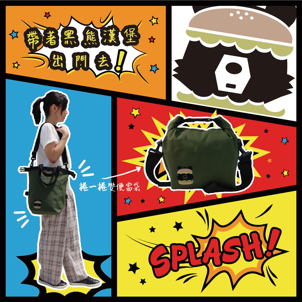 一包多用帆布便當袋 購物袋 大容量 極觸感植絨 黑熊漢堡 飯糰