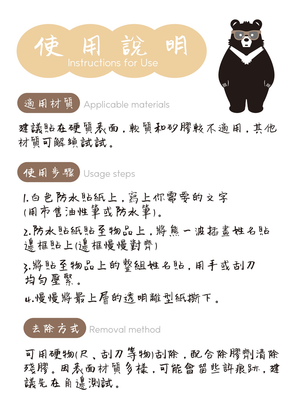 ★防水材質:經久耐用,確保姓名貼在日常沖洗環境下都能保持清晰。