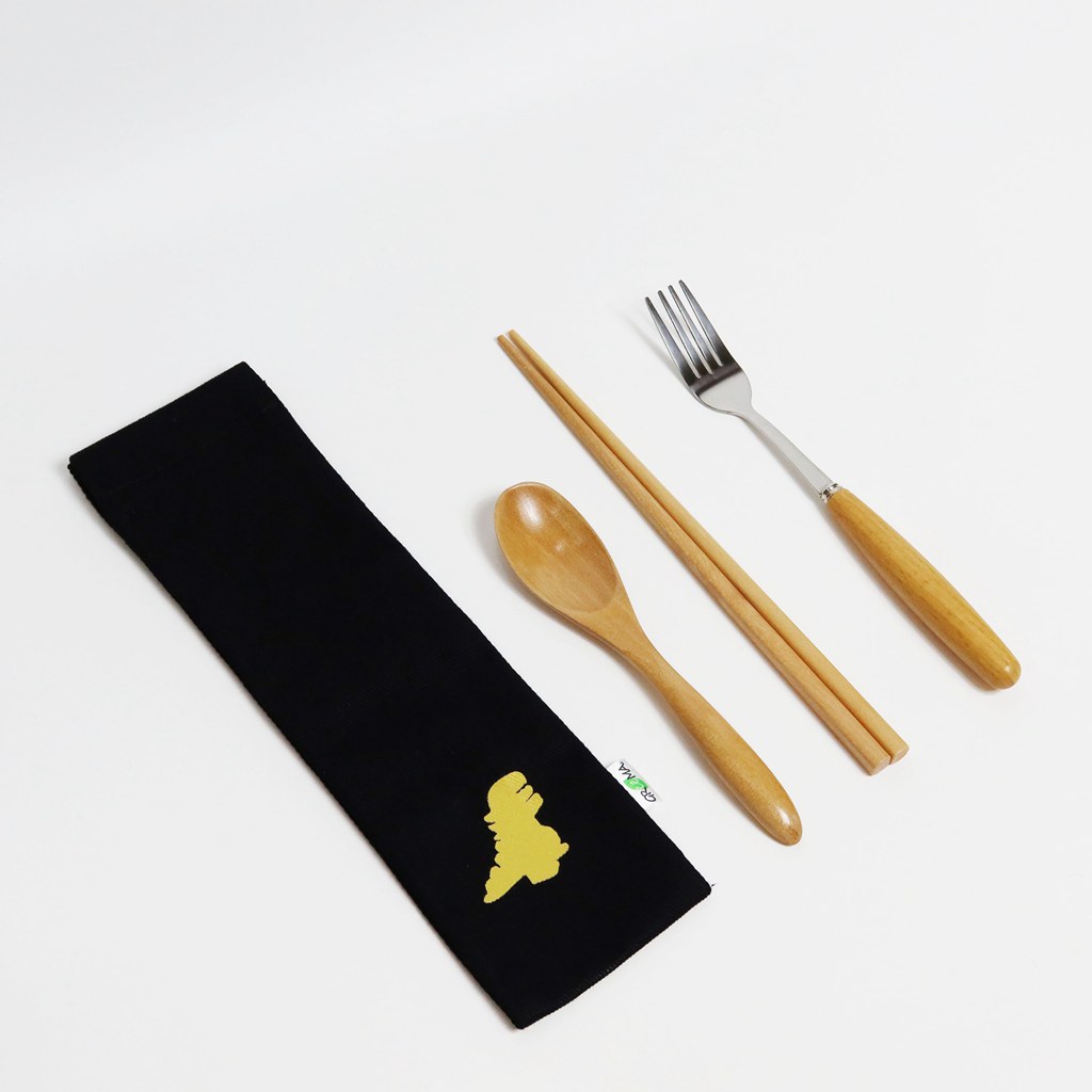 響應環保愛地球,環保餐具 魔鬼氈式收納帆布袋,陪伴妳的每一餐。