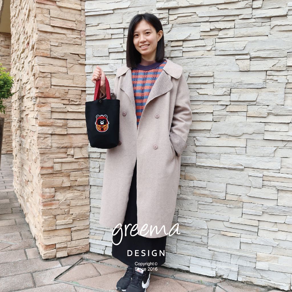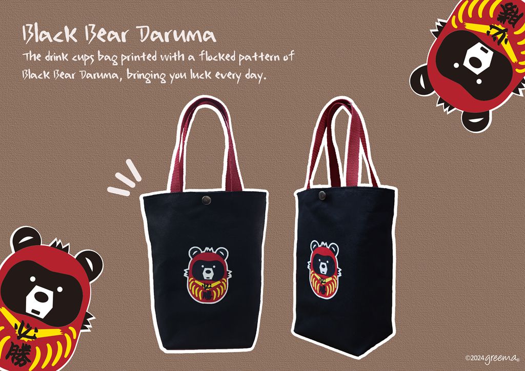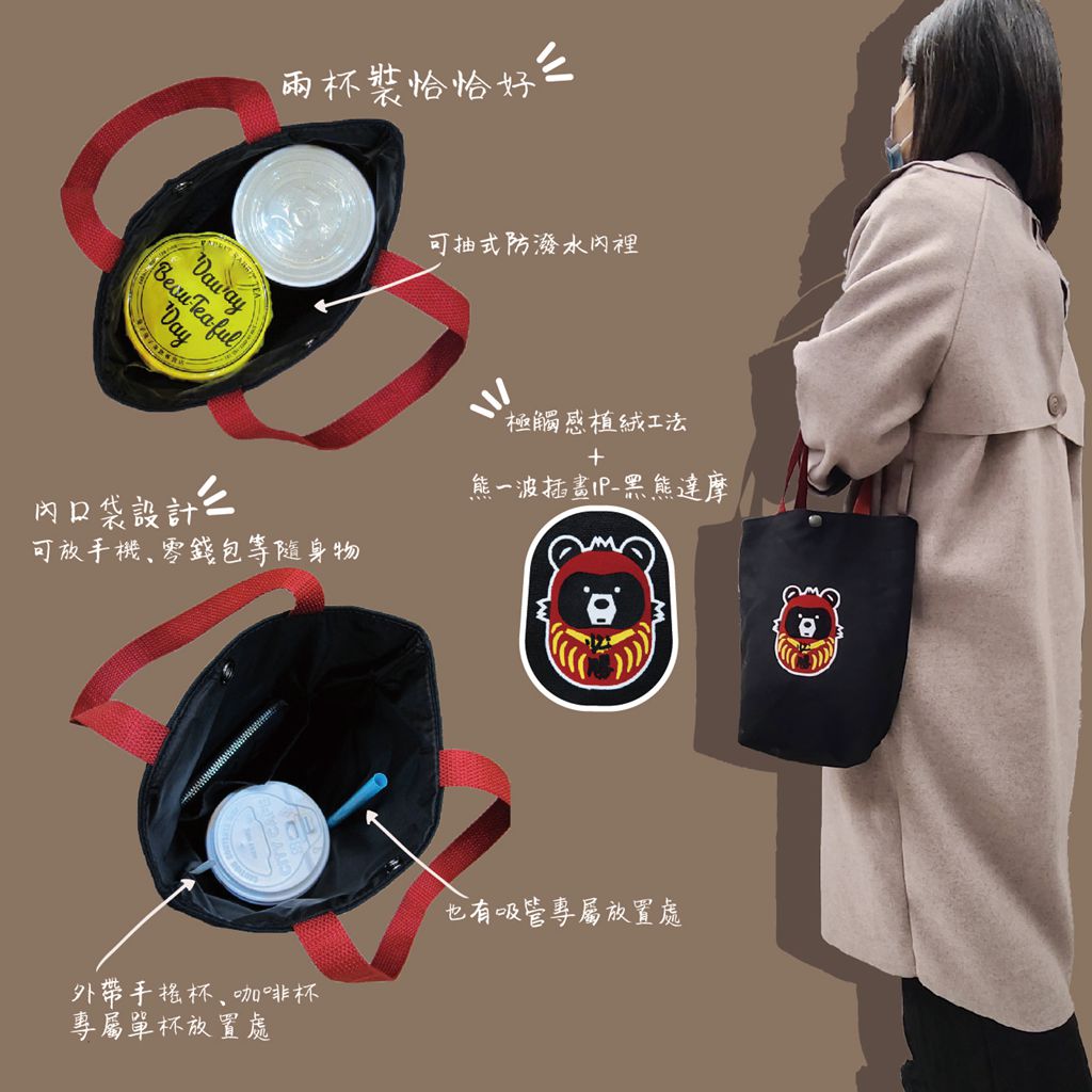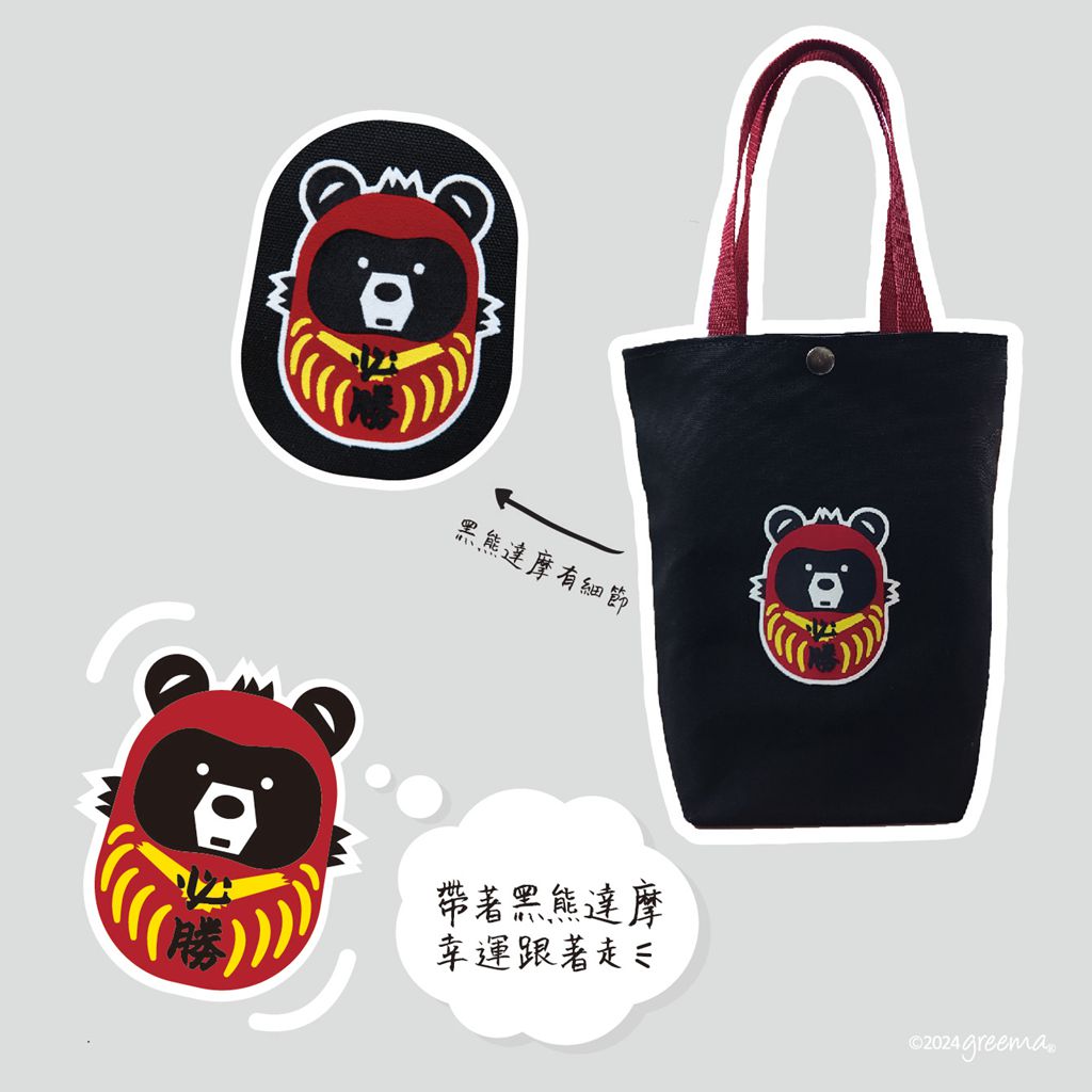 植絨黑熊達摩 環保飲料提袋 帆布袋 雙杯款