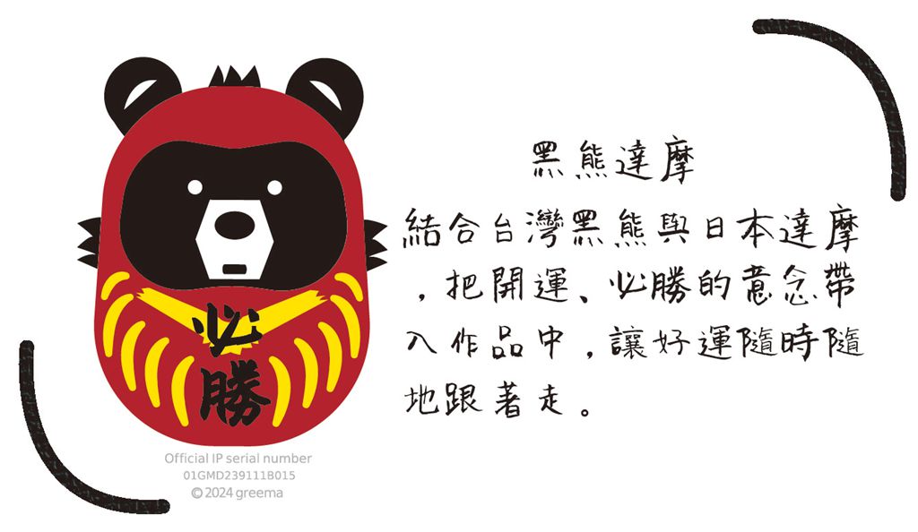 ★全新熊一波插畫IP-黑熊達摩,以極觸感植絨工法呈現。