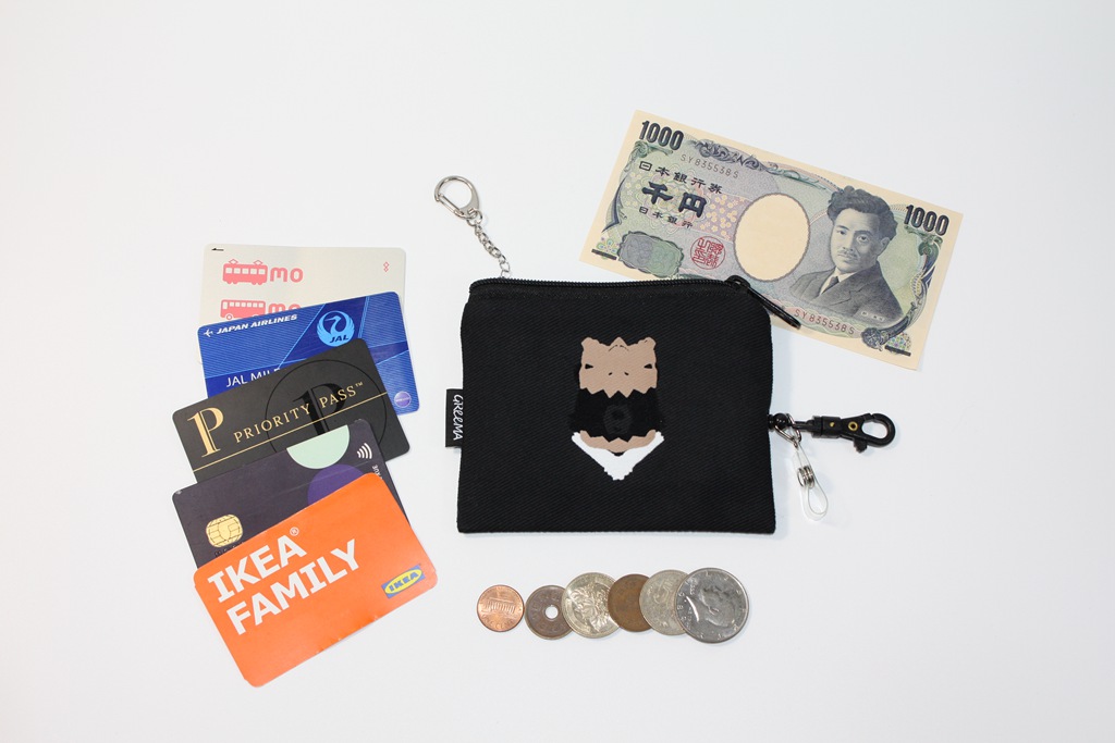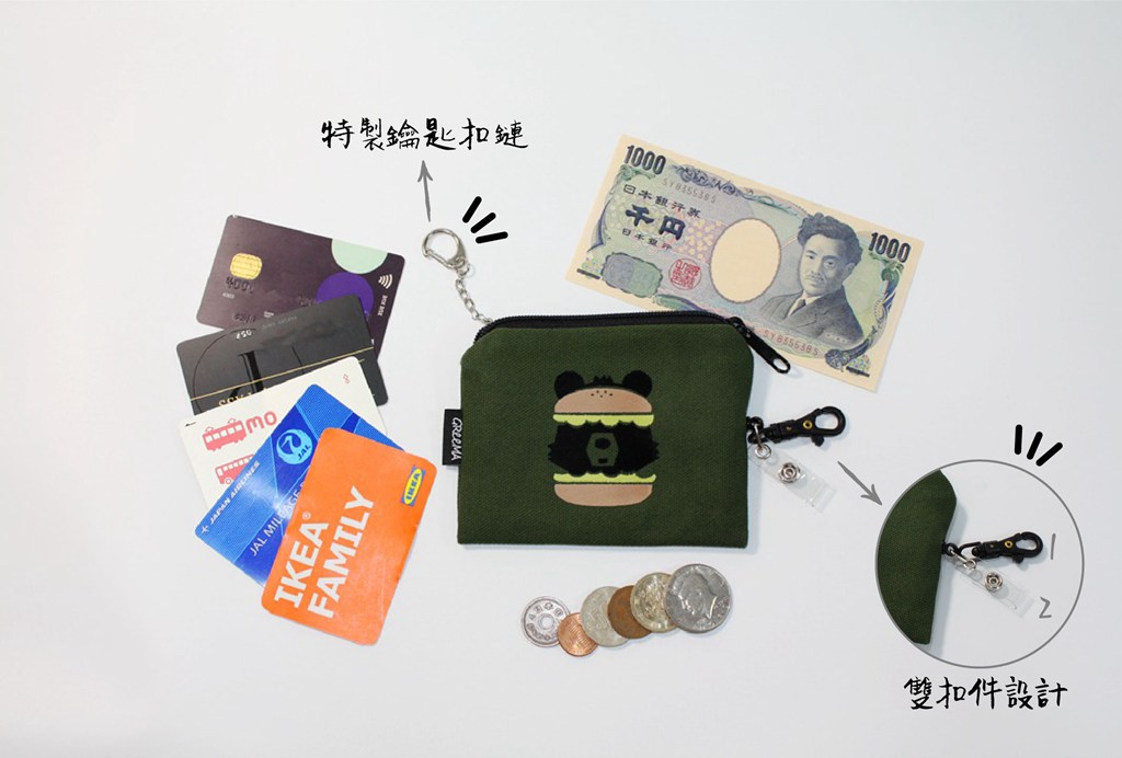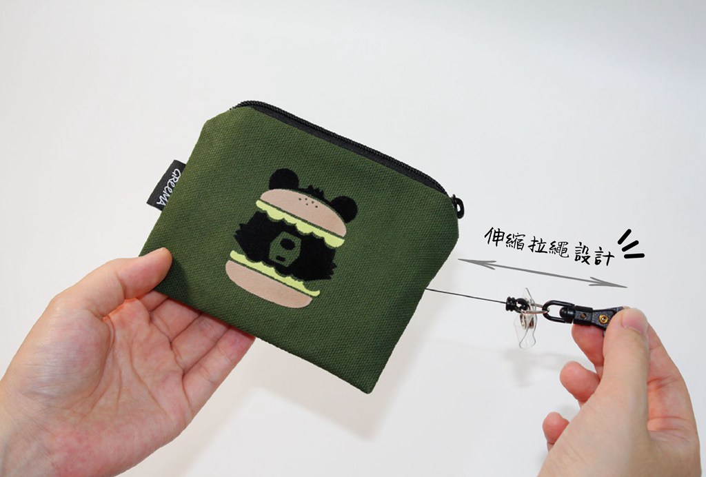 臺灣黑熊 植絨插畫 帆布伸縮拉繩零錢包 票卡包