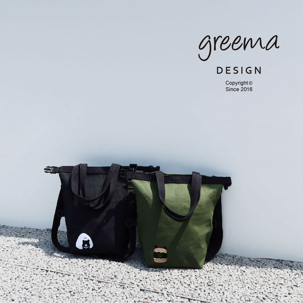 黑熊飯糰 漢堡 帆布束口袋 收納袋 零錢袋 極觸感植絨插畫